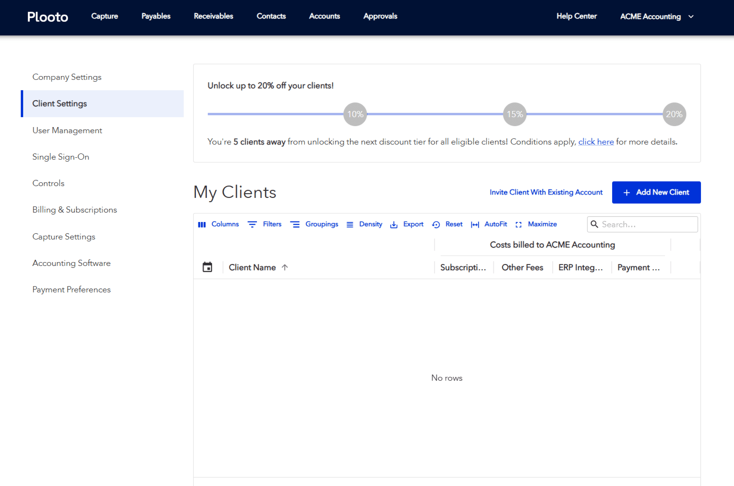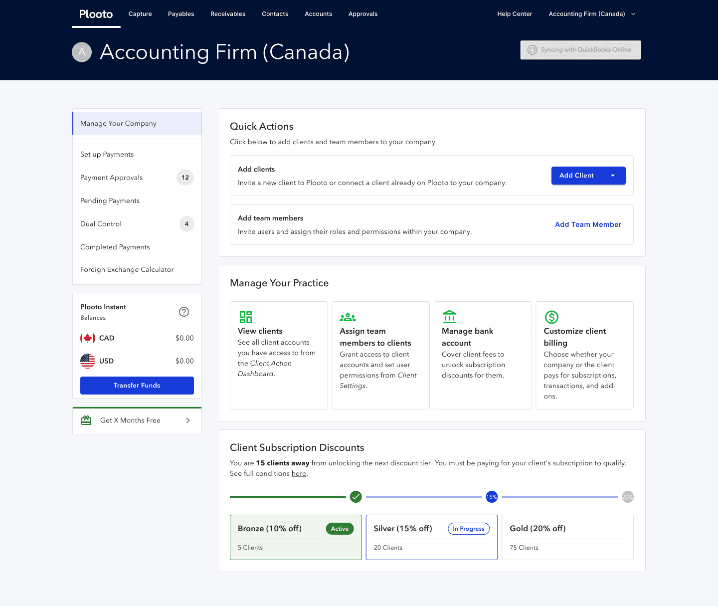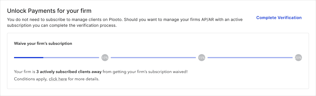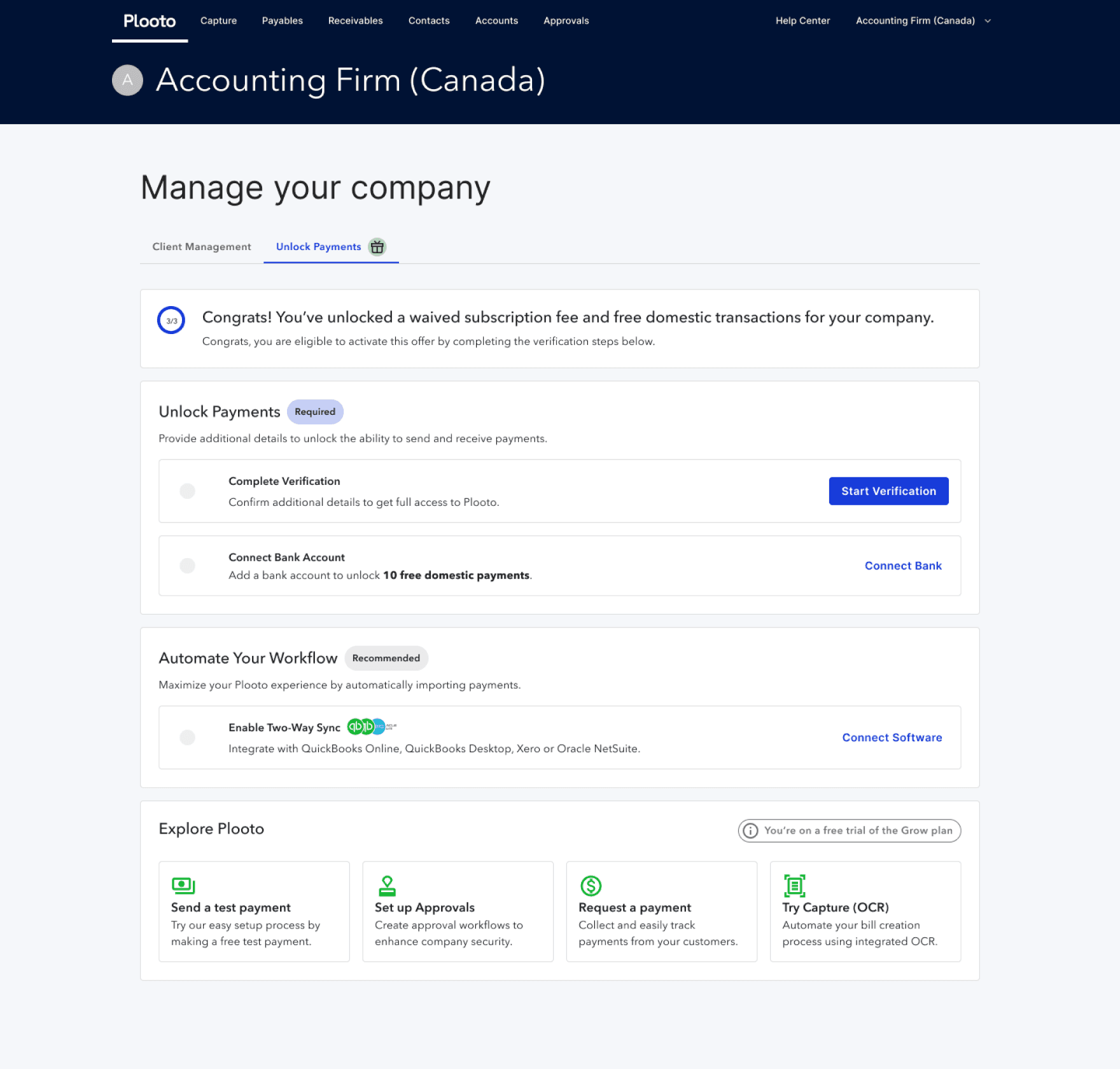 Action buttons surface the most important tasks, reducing friction and supporting efficient daily workflows. Even after users unlock payments and see a new dashboard, the firm/client management tab will still be found as the primary tab users land on.