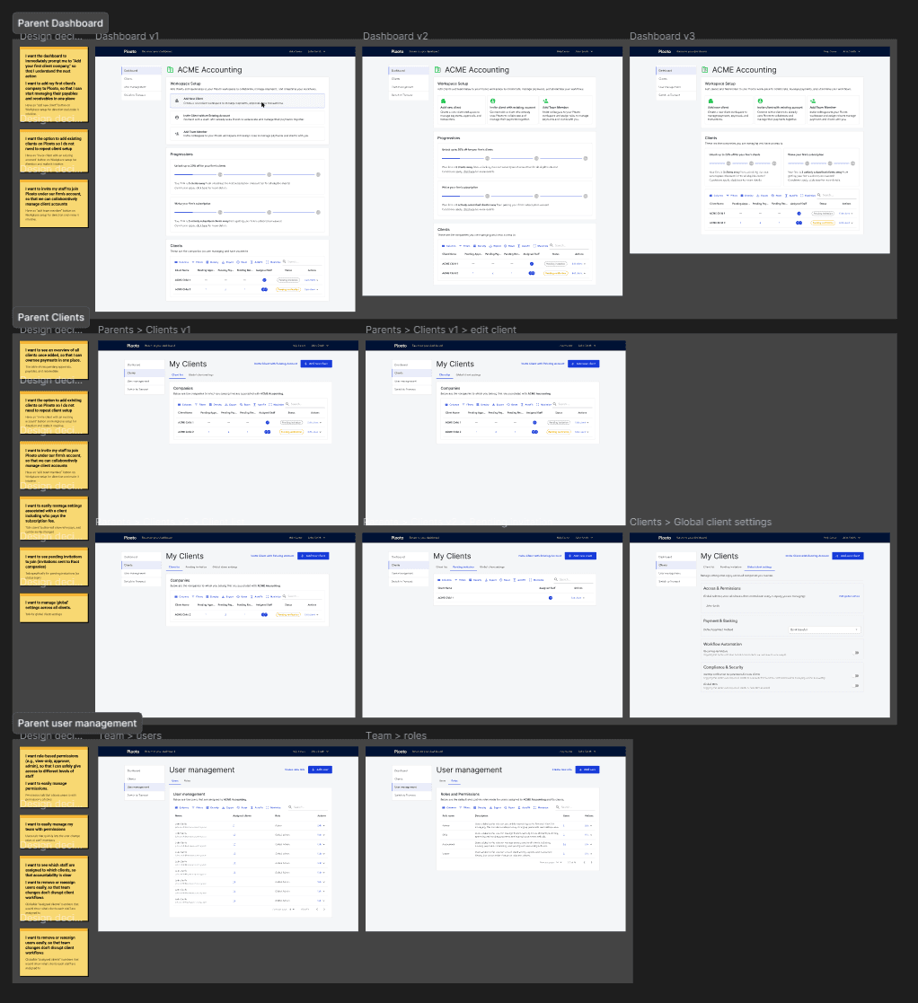 Regardless of what business type the user selected, they were always directed to the same transaction-focused dashboard. This meant that the parent company experience is not catered for their primary need of managing clients, leading to a disjointed user journey.