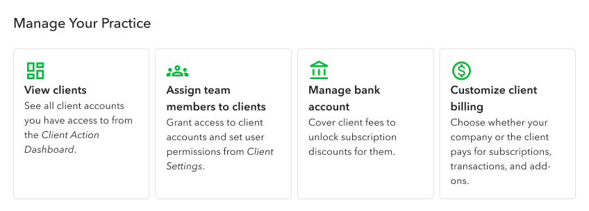 Account Executives and Customer Support Managers shared that many parent company users contacted them for help with adding clients, inviting team members, and viewing all accounts. I decided to add quick actions and practice management actions on the dashboard that performed core features.