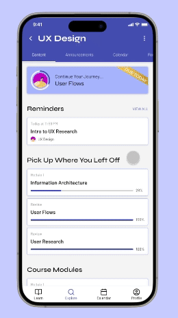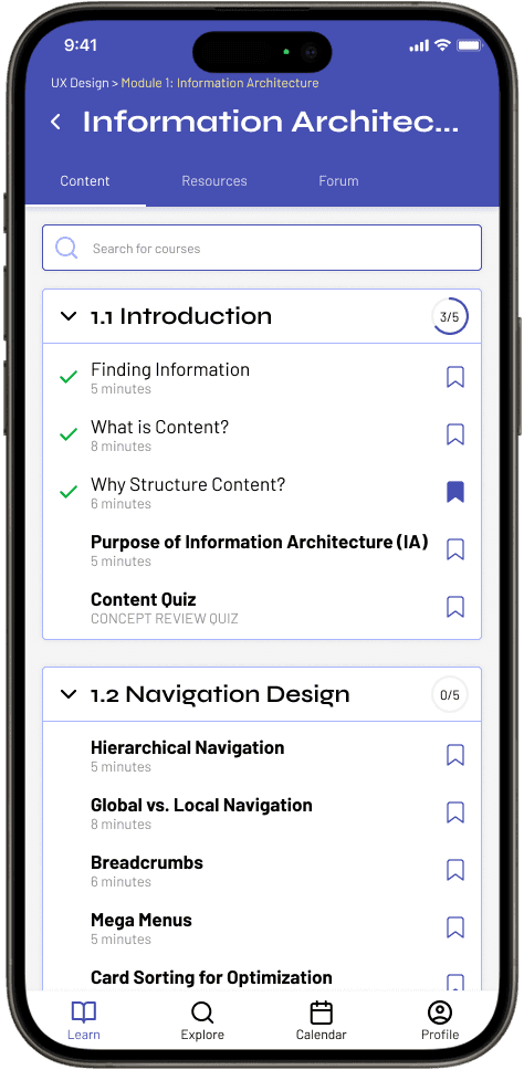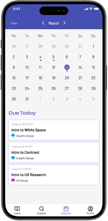 Users can see when each content should be read within the course page itself. However, if users want to see deadlines from all their courses, the calendar tab will provide that information.