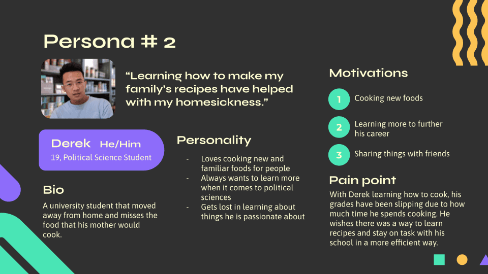 One of our researchers created a few personas. These two were chosen because we felt that it encapsulated our target audience the most.