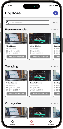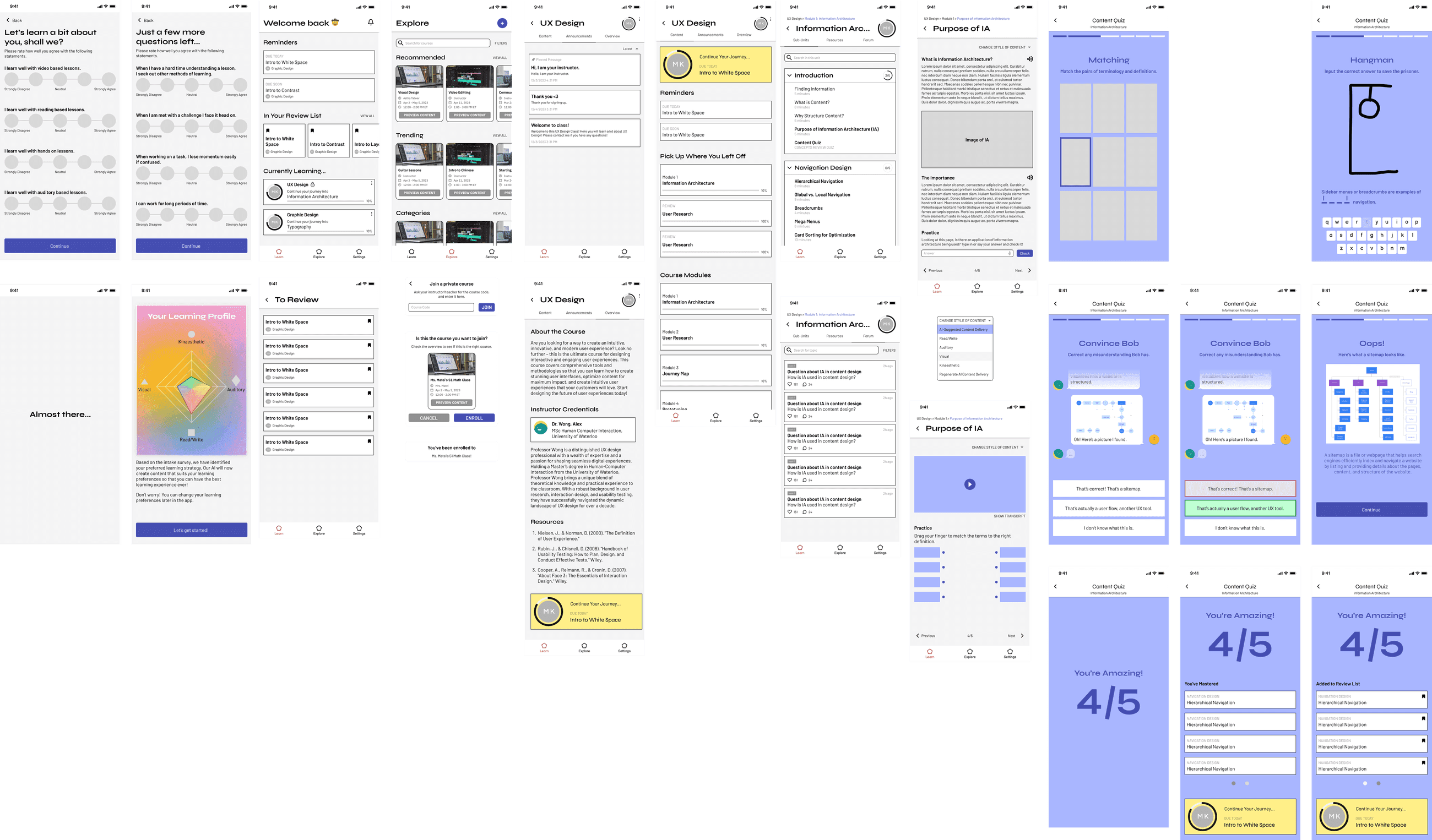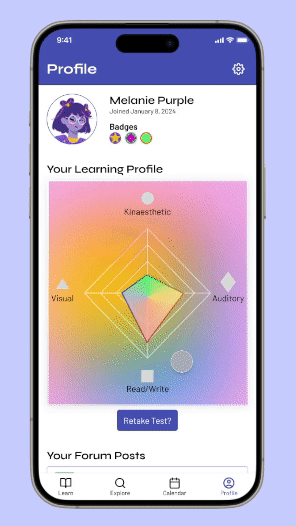 Our goal was to design a mobile content-delivery app that allows users to learn with different styles through the power of adaptive AI.