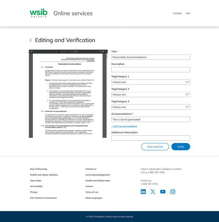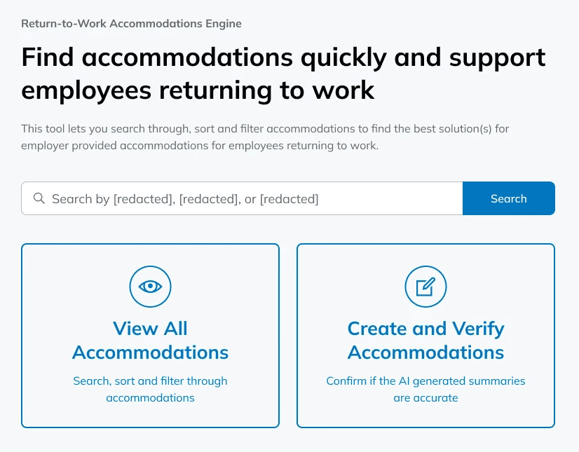Our team was tasked with designing a hi-fi prototype of a GenAI-powered search engine that minimizes the difficulties and search time needed for Return-to-Work (RTW) specialists to look up accommodations for injured workers.