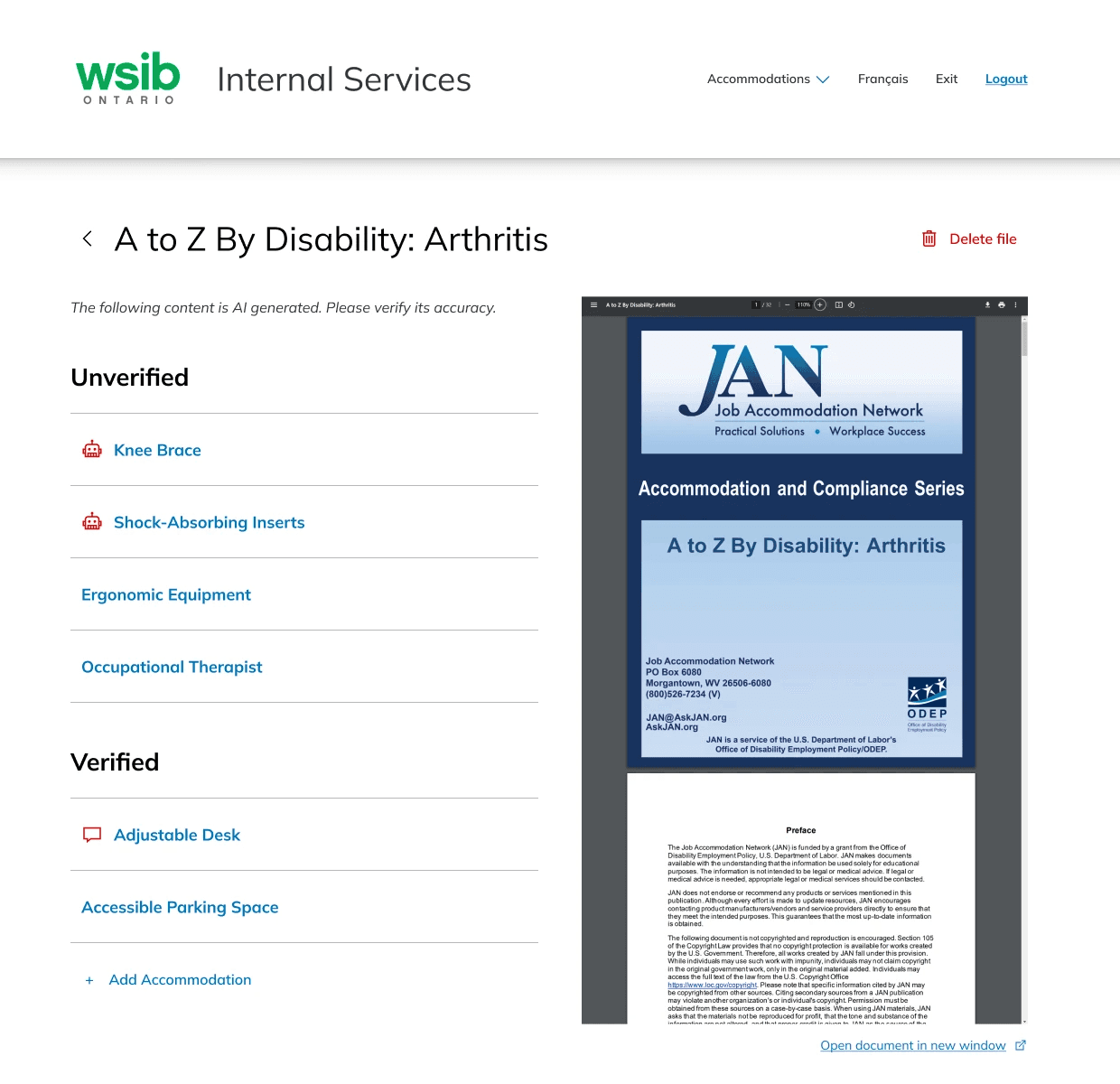 Find and recommend appropriate work accommodations efficiently
